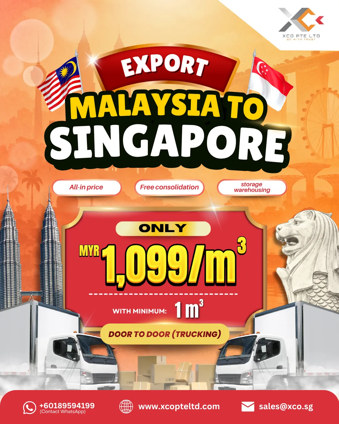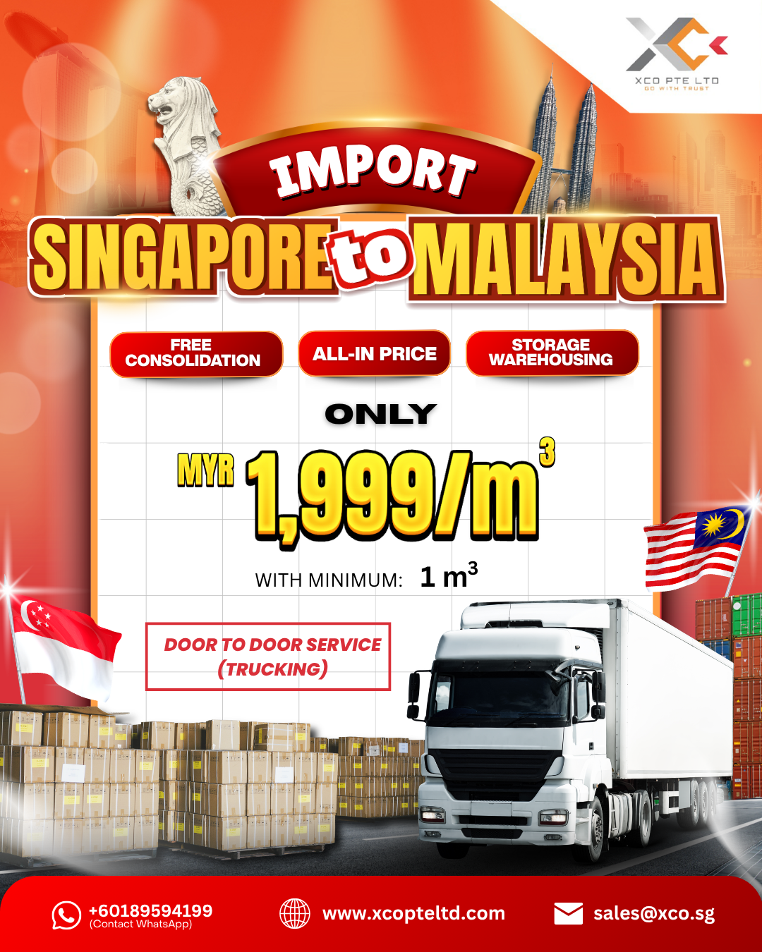Reliable land freight services between Malaysia and Singapore. With dedicated trucking solutions, we ensure smooth cross-border delivery, efficient transit times, secure handling, and consistent delivery performance for your shipments.